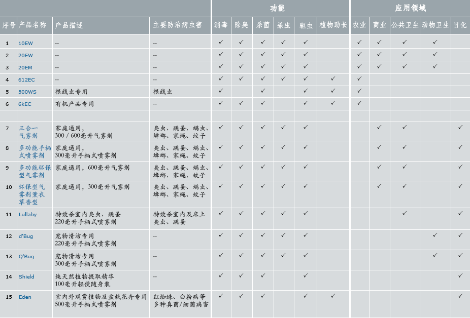 产品1 - 6 为浓缩型,包装型号有1升、5升、20升。